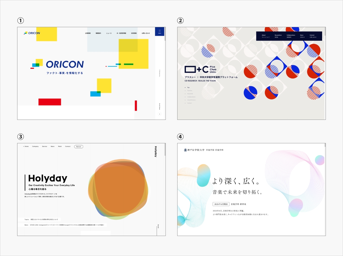 「採用・受験生向けサイト」や「イベント・プロジェクトサイト」と同様に、若者向けの作風や最近のトレンドを積極的に取り入れたデザインが目立ちます。その時代の空気感を意識したデザインが多いため、ビジョン・周年記念サイトも、トレンドが反映されやすいジャンルといえます。